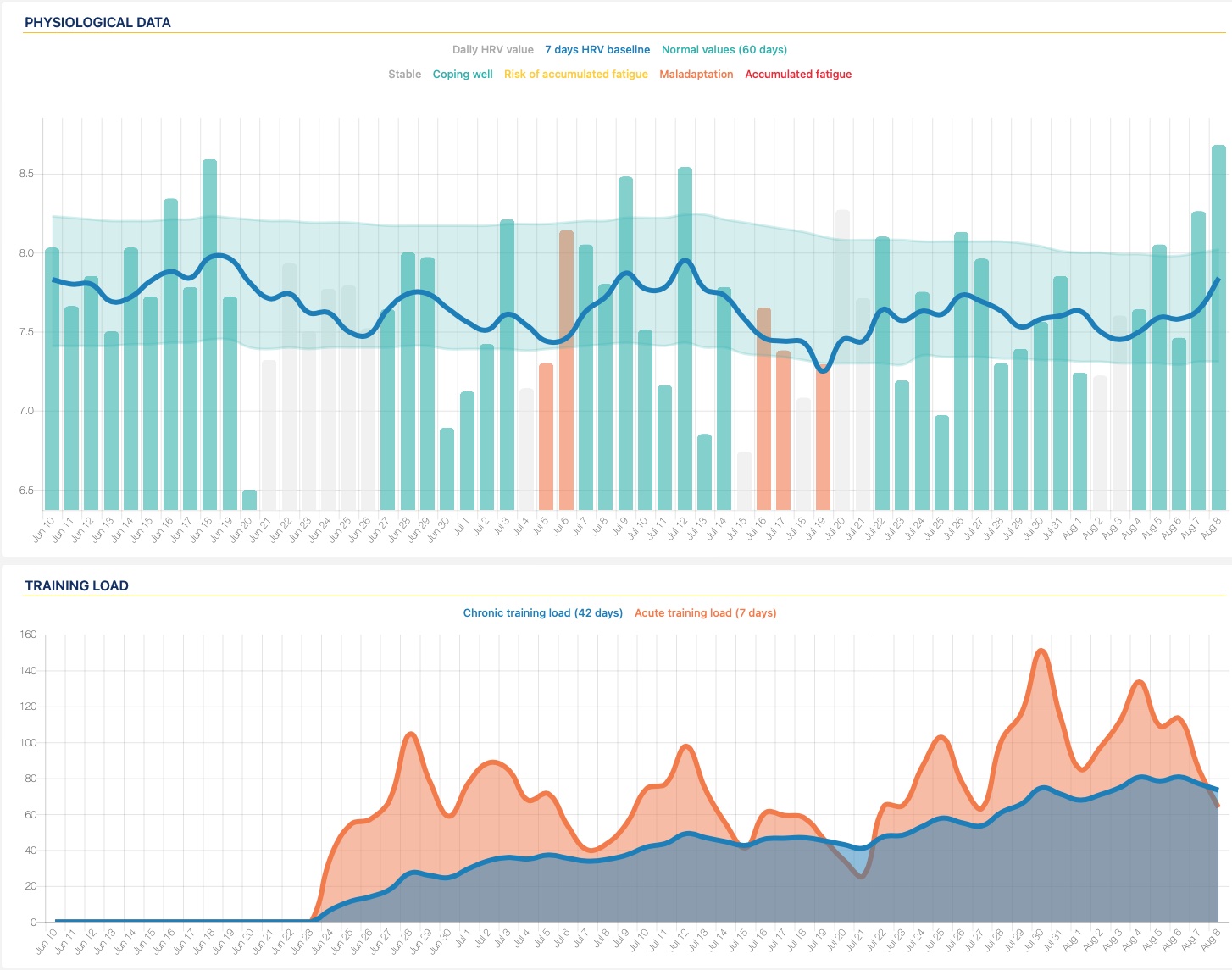 • Shaded range – 60 day HRV average